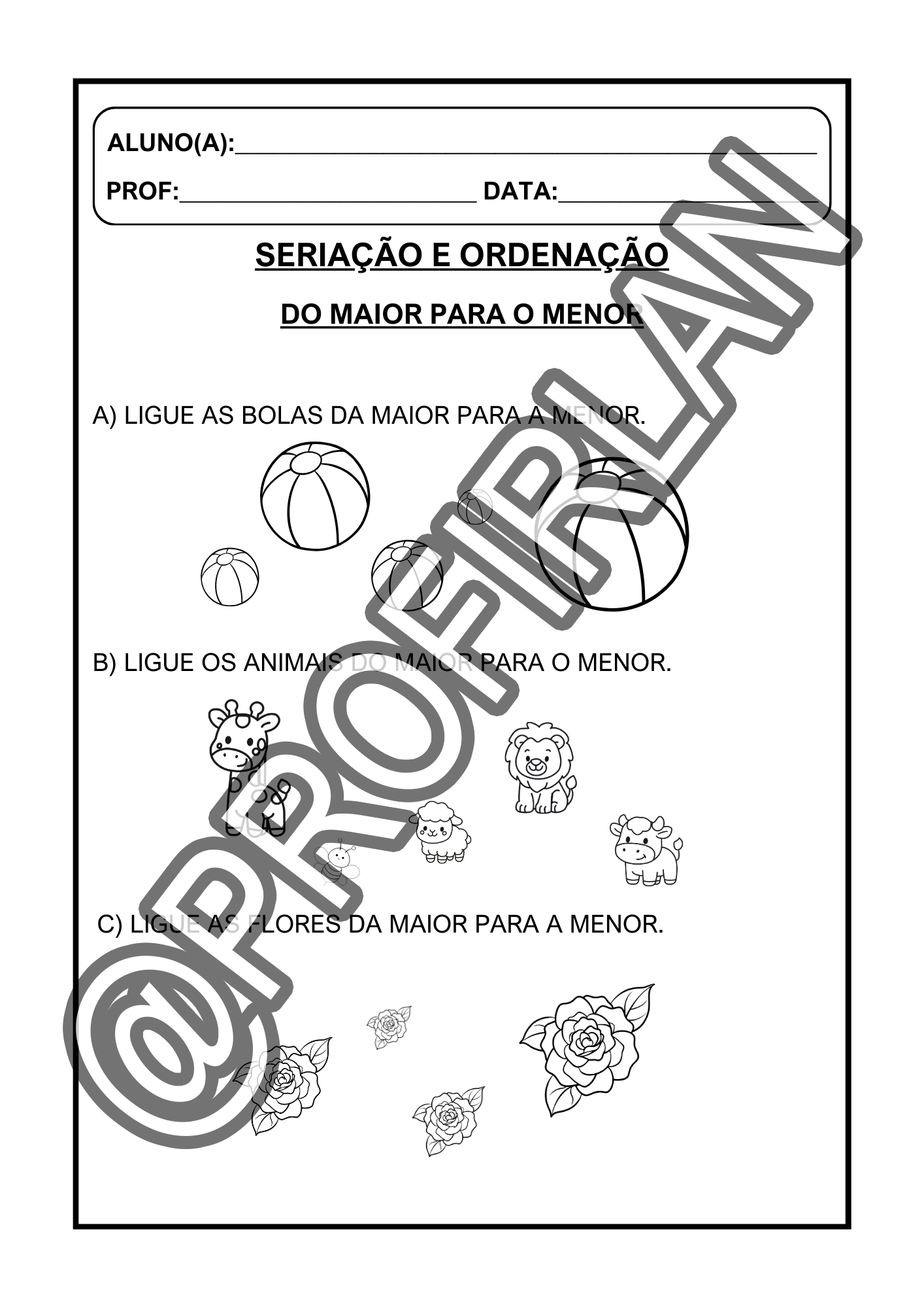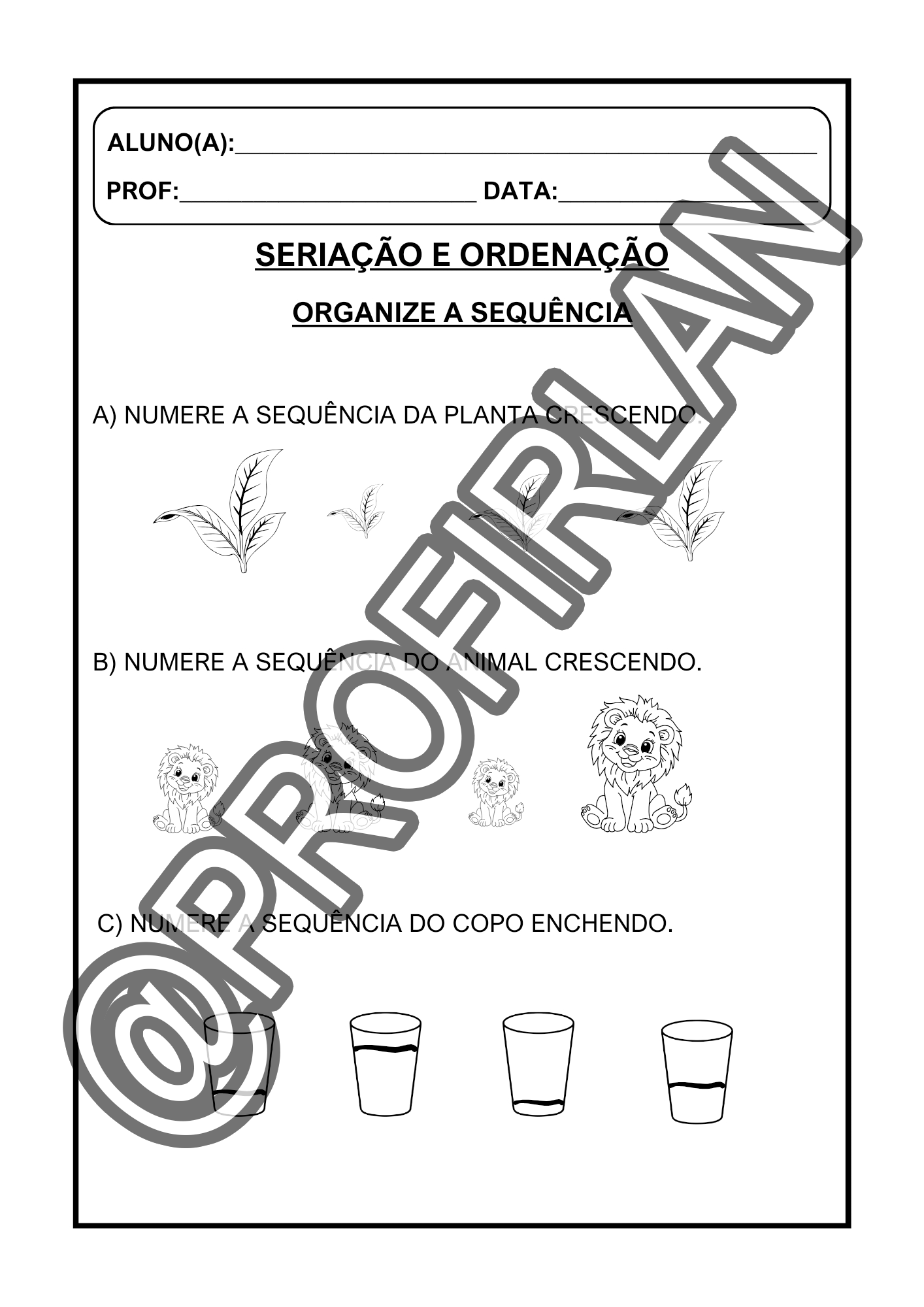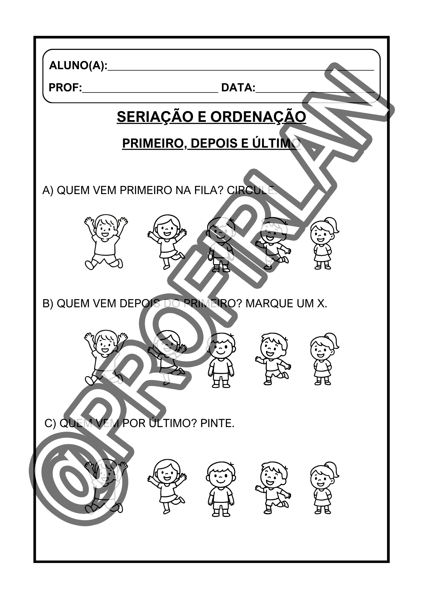Exercícios de seriação e ordenação (do menor para o maior, do maior para o menor, sequência, primeiro/depois/último);