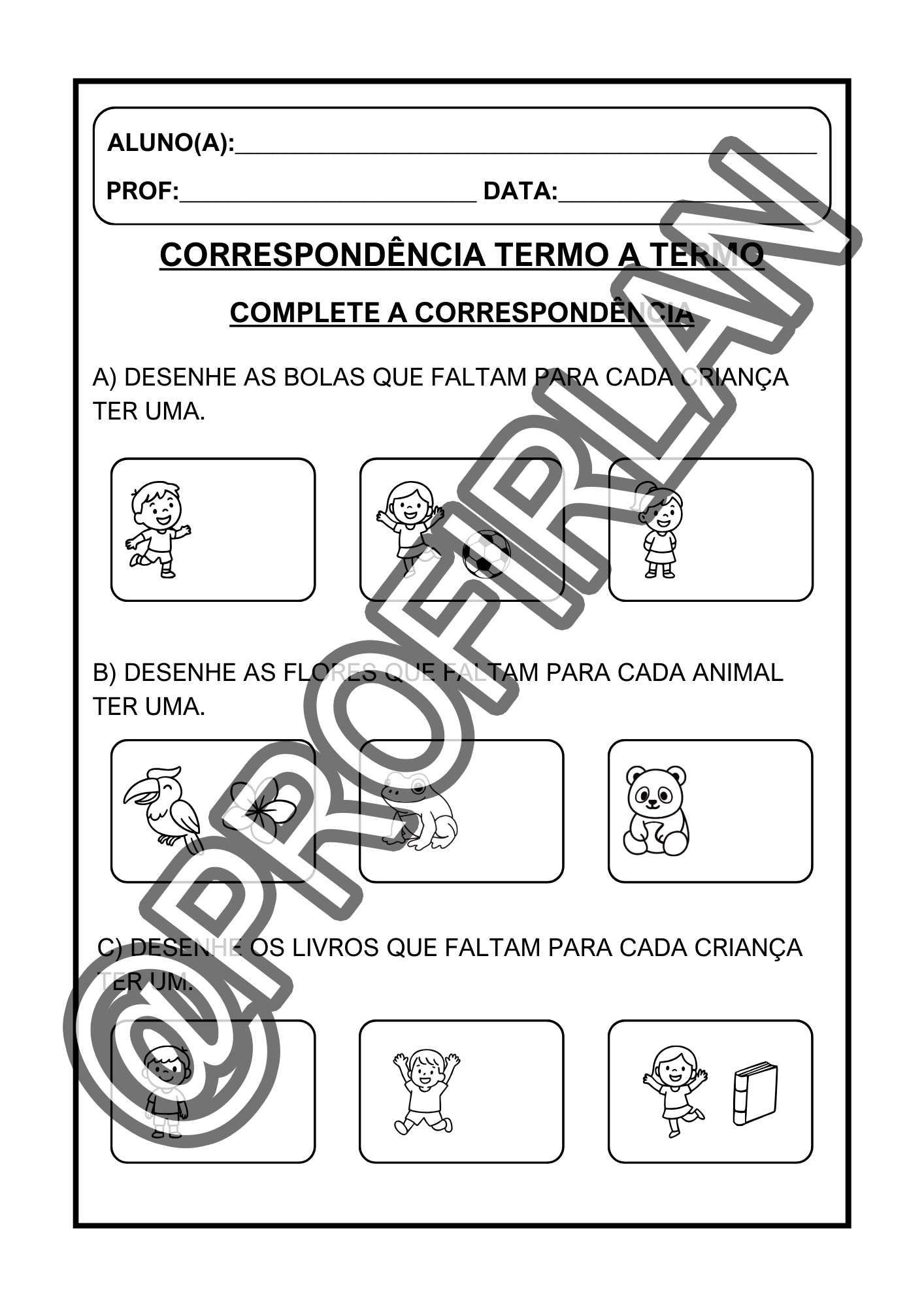 Atividades de correspondência termo a termo e distribuição correta;