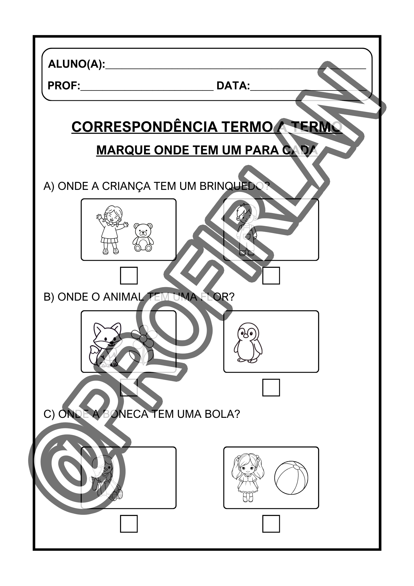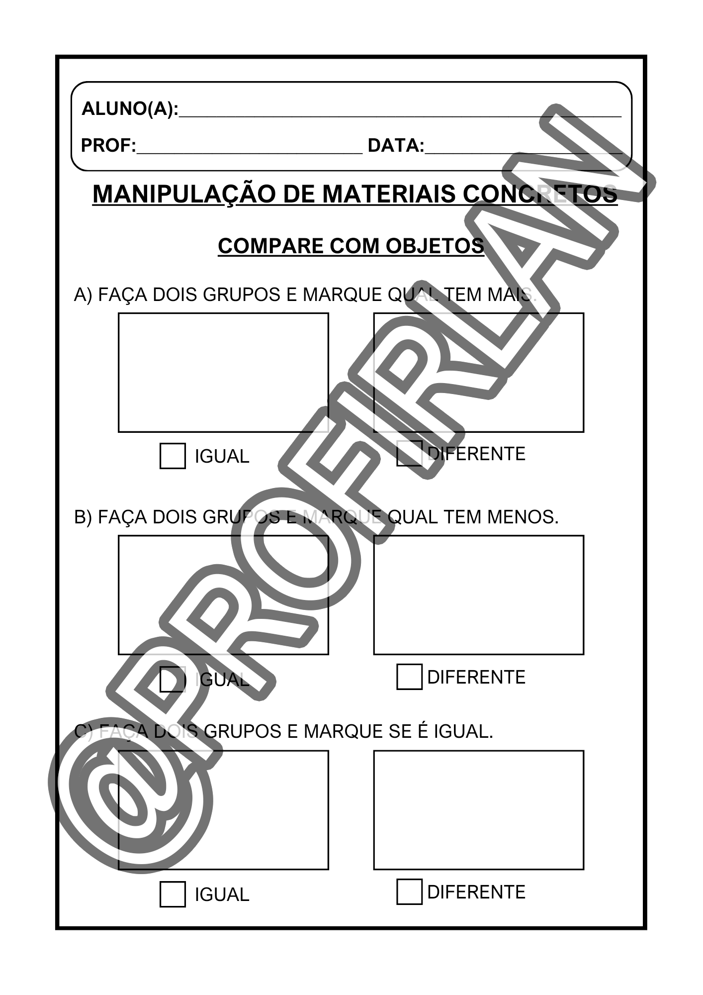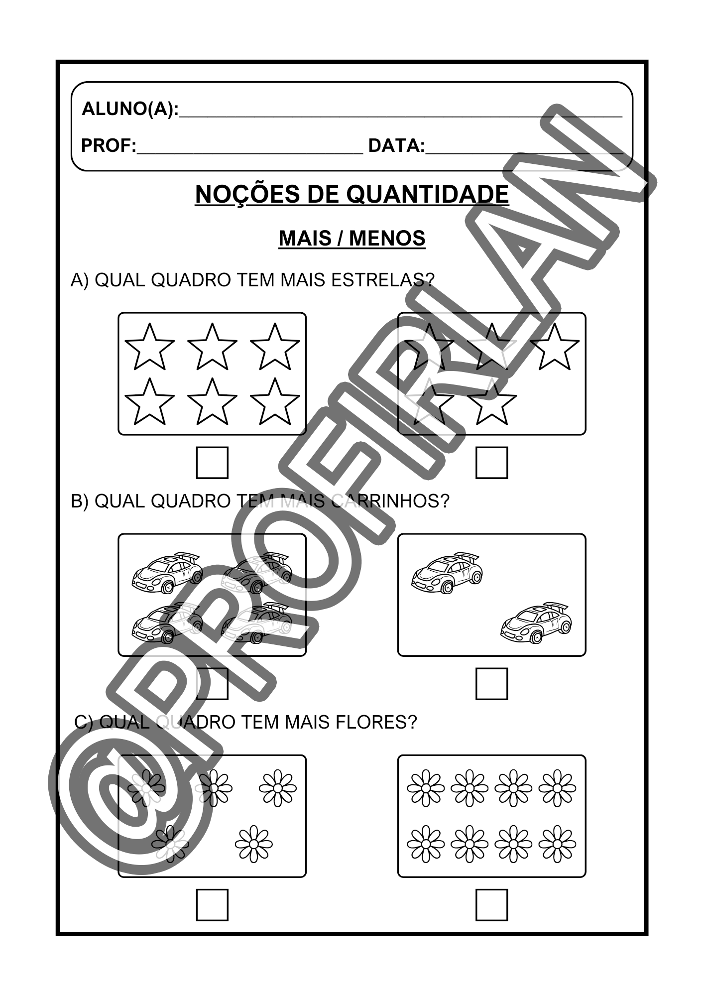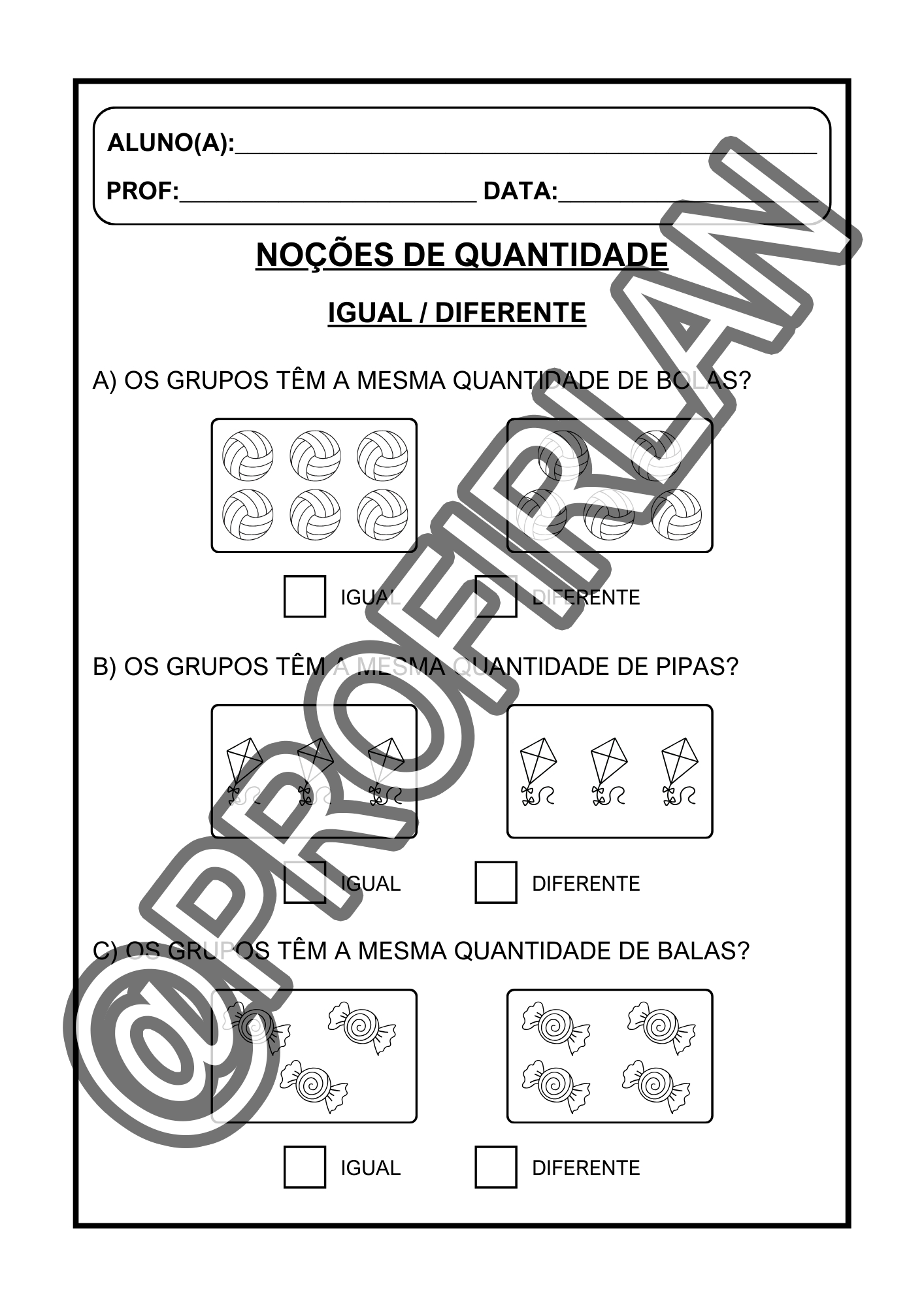 Exercícios de comparação (quem tem mais, quem tem menos, igual ou diferente, maior ou menor);