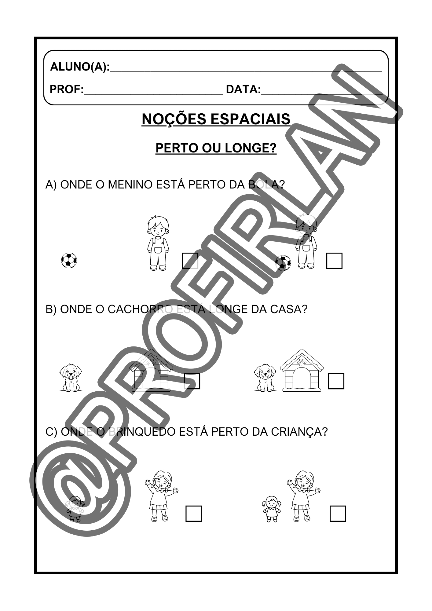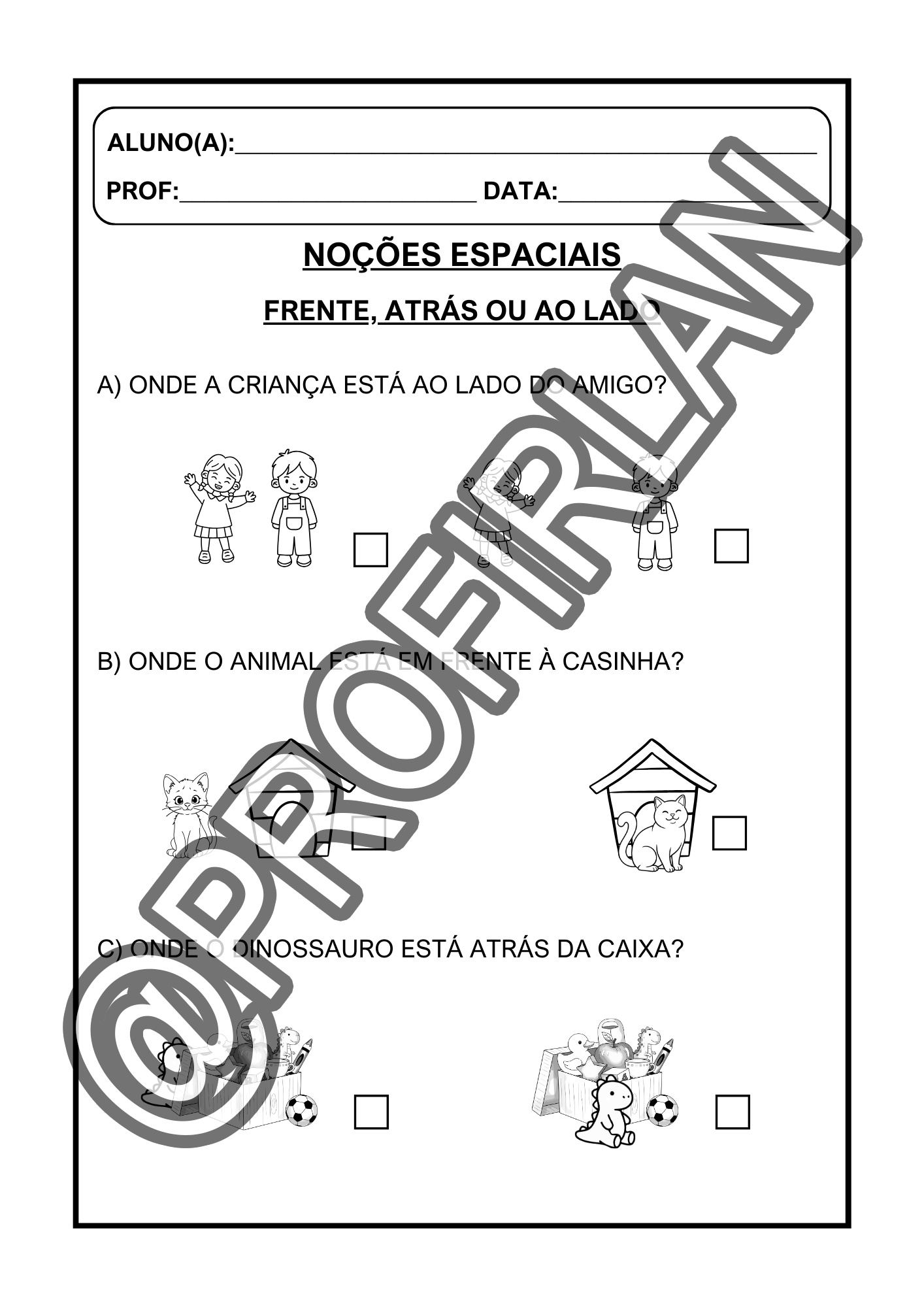Propostas de noções espaciais (dentro/fora, em cima/embaixo, perto/longe, frente/atrás/ao lado);