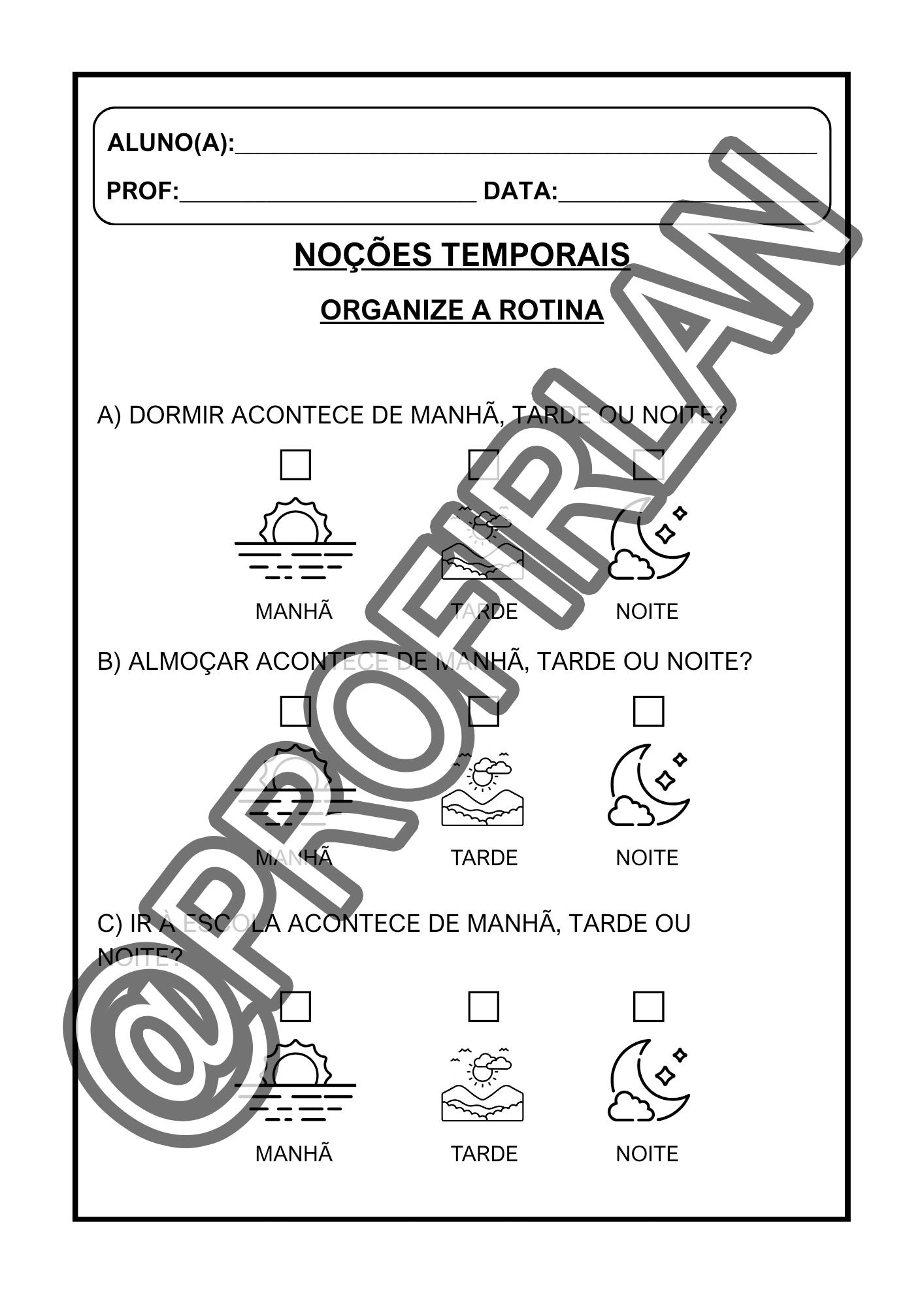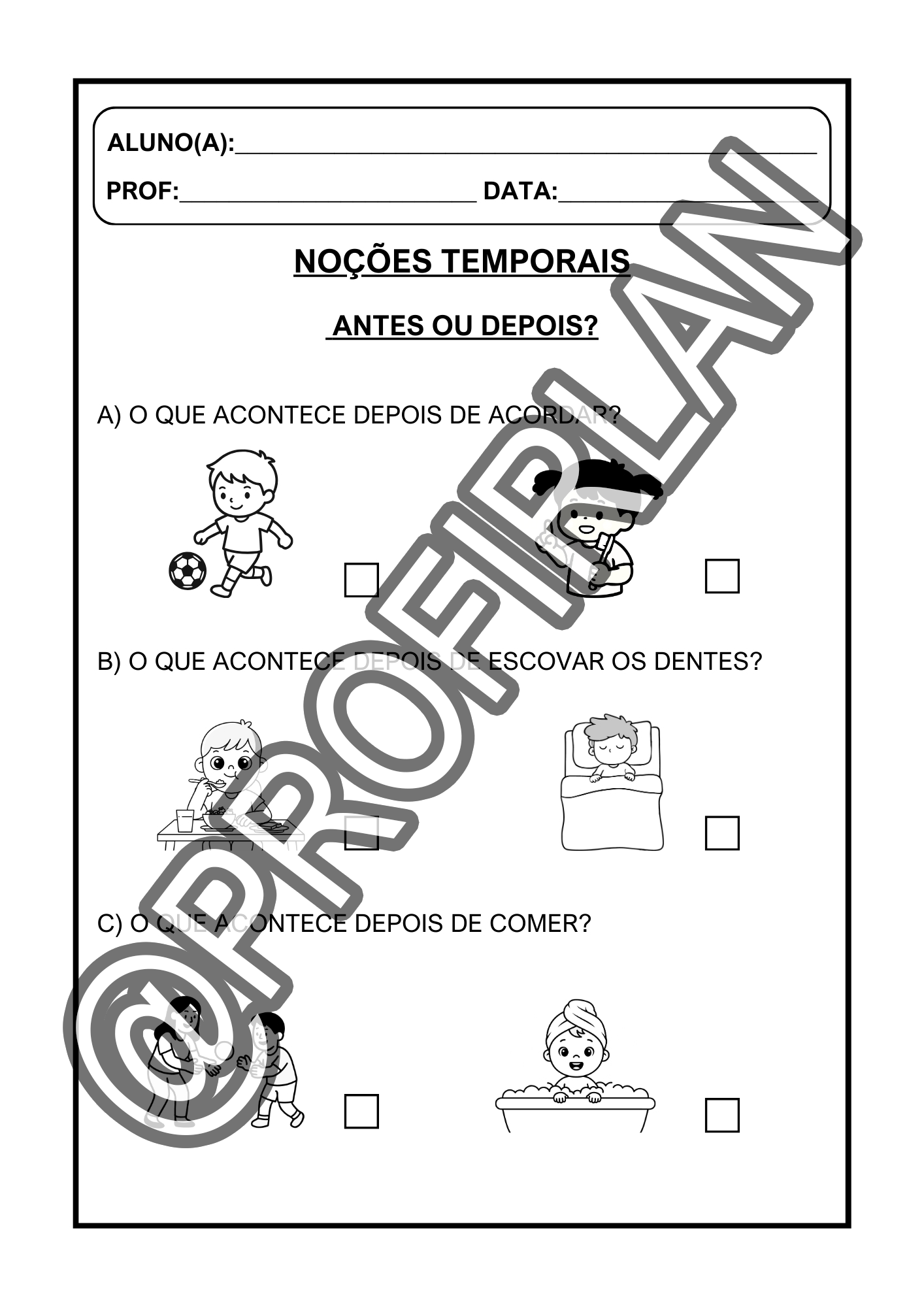 Atividades de noções temporais (antes/depois, rotina, o que vem primeiro);