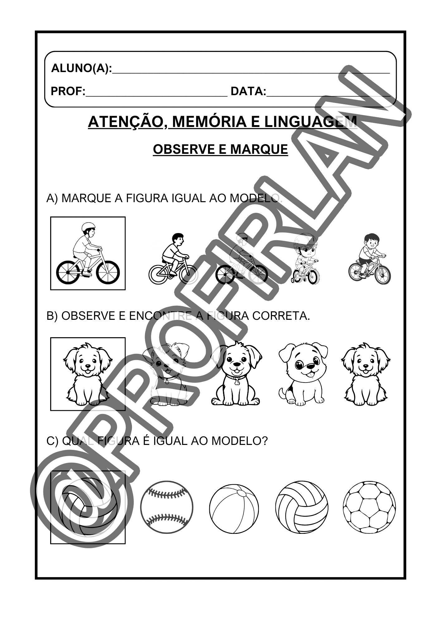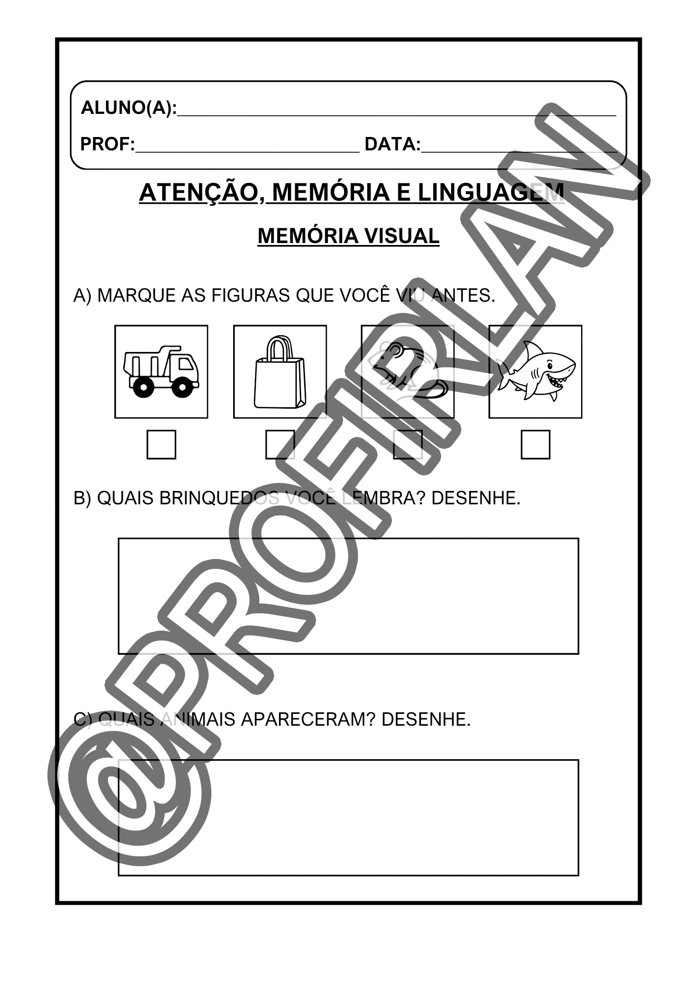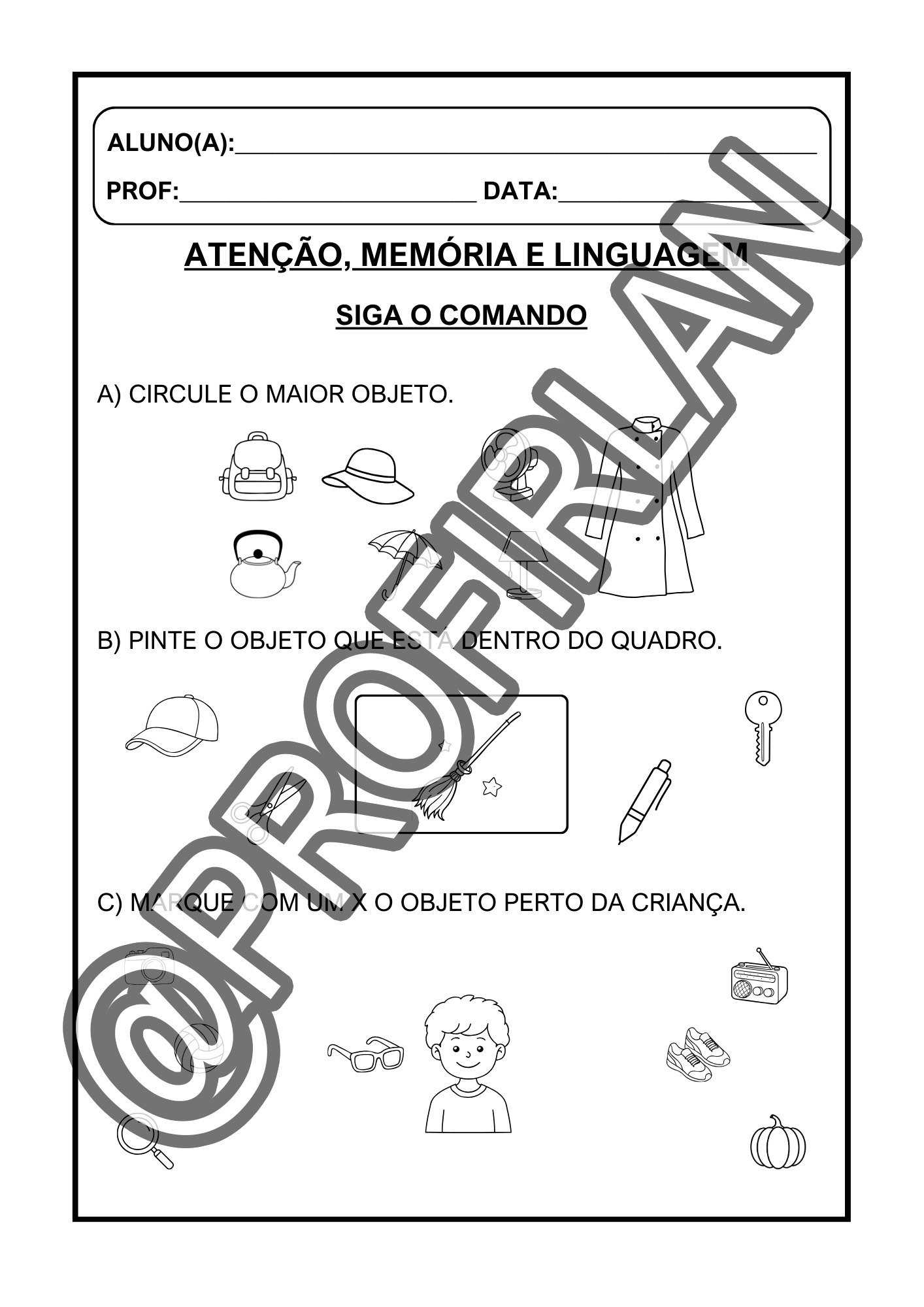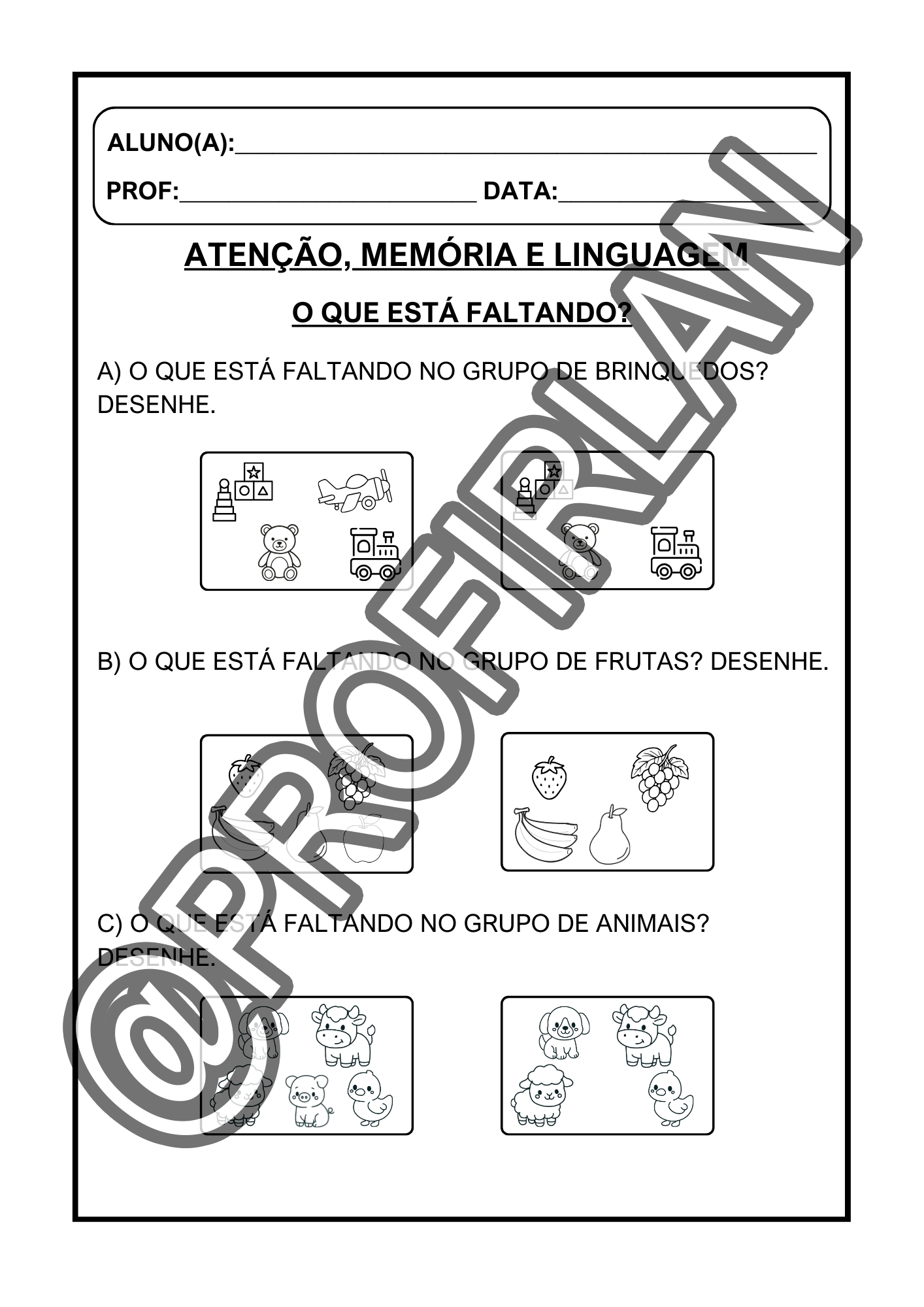 Atividades de atenção, memória e linguagem.