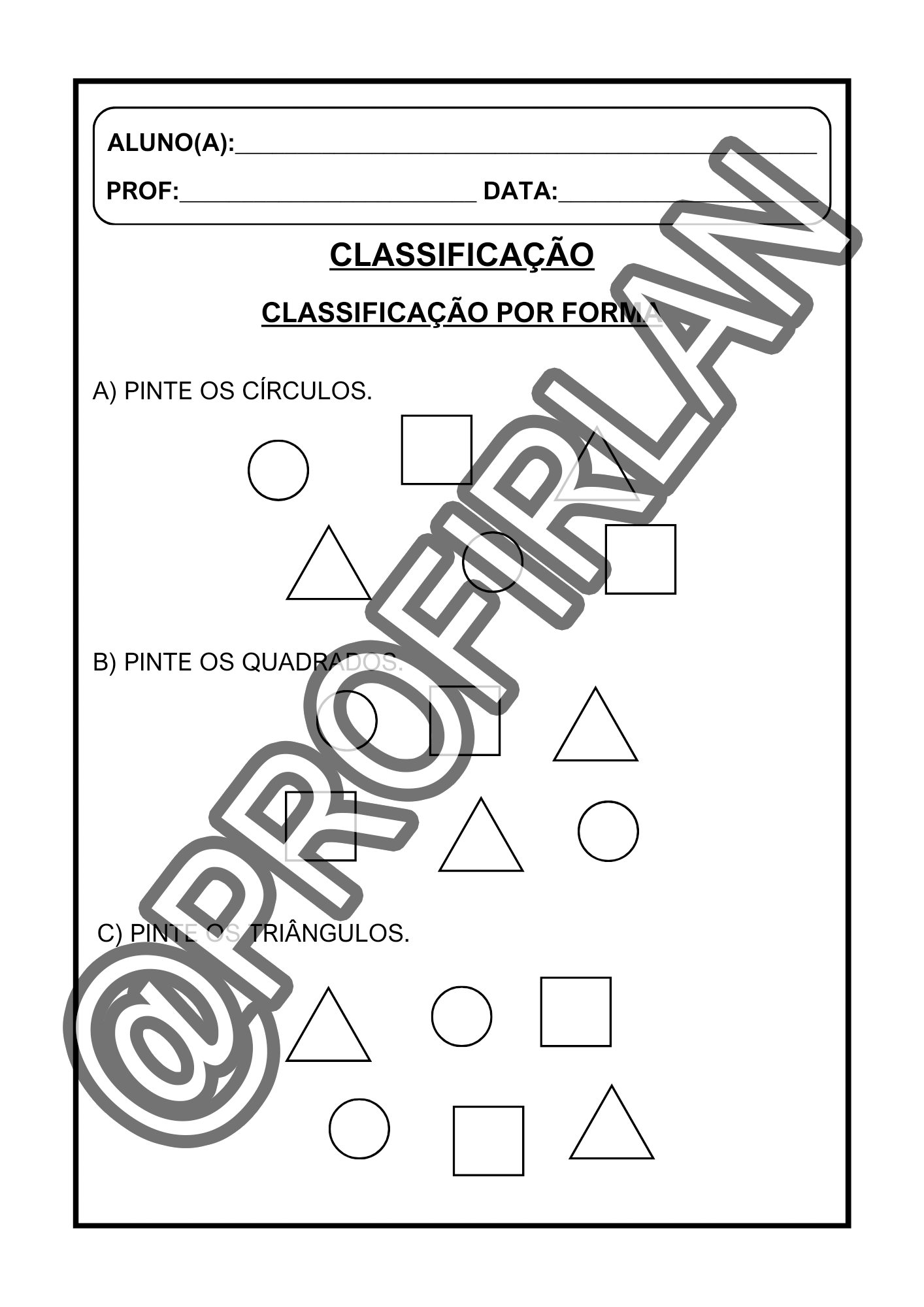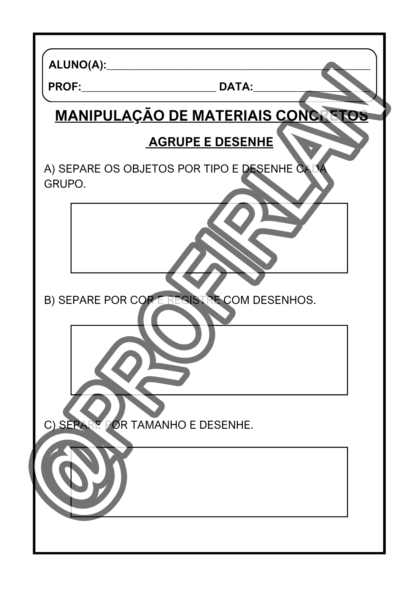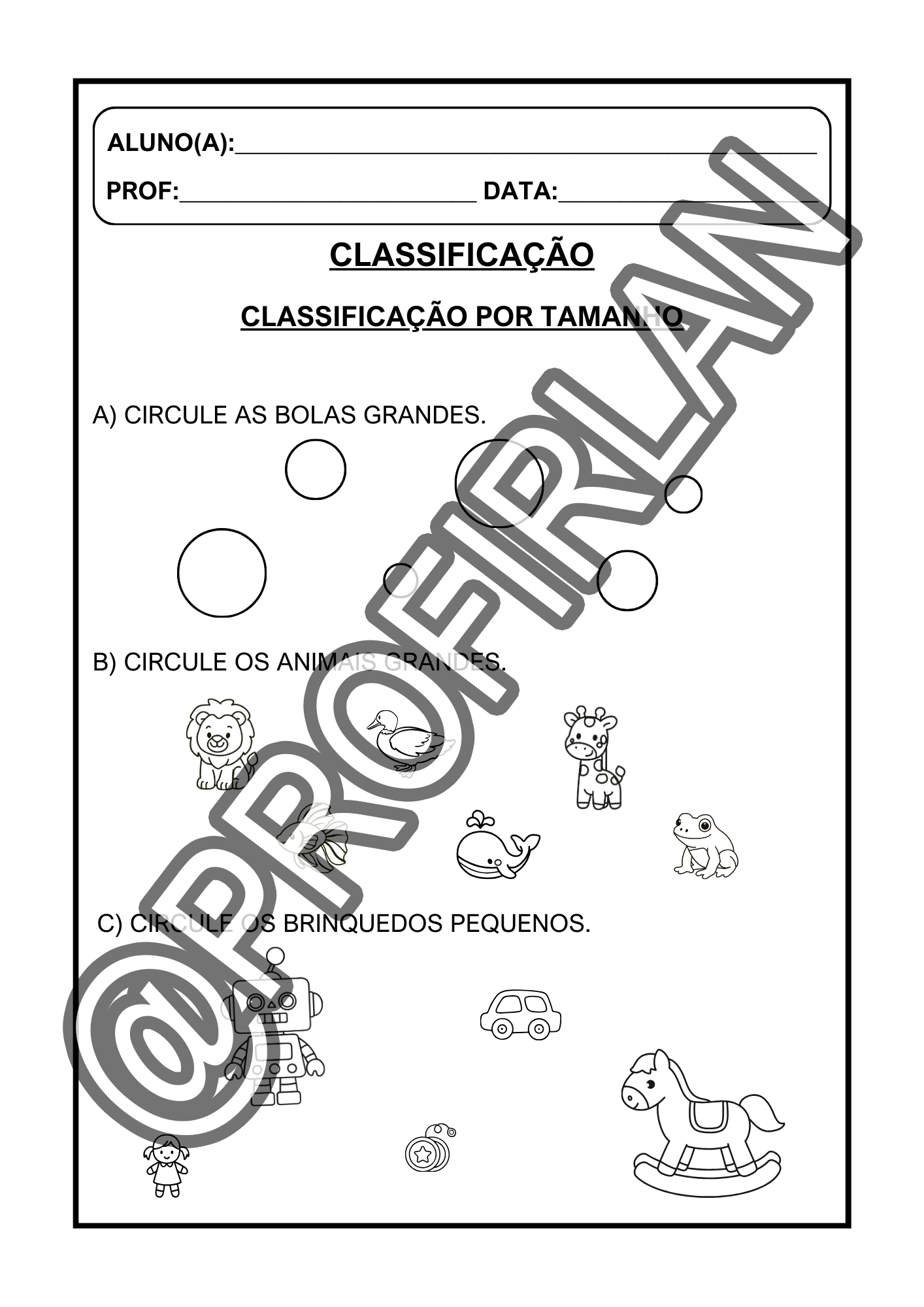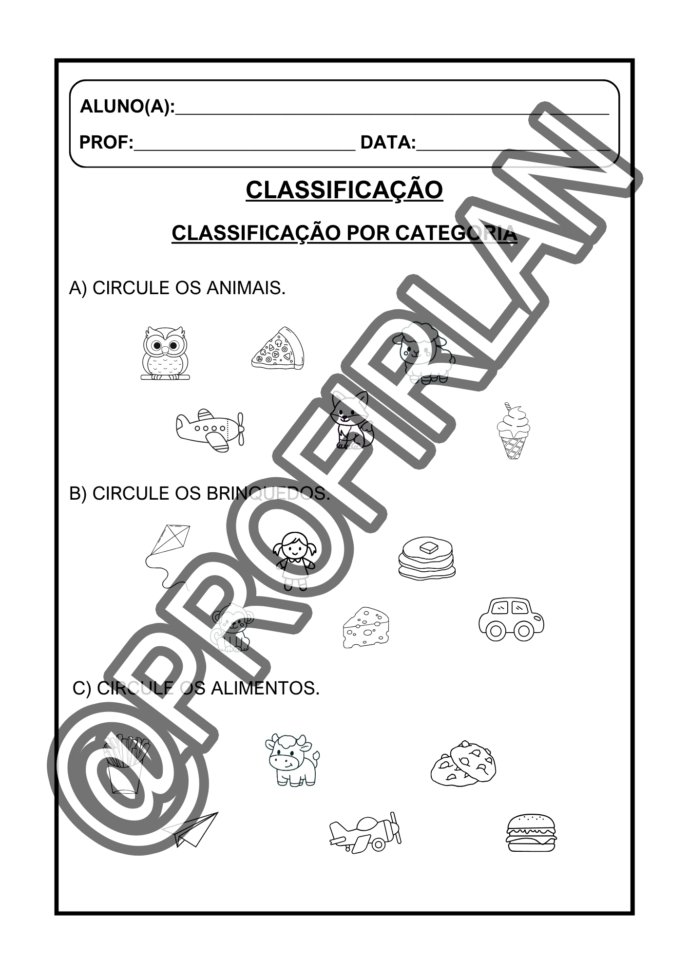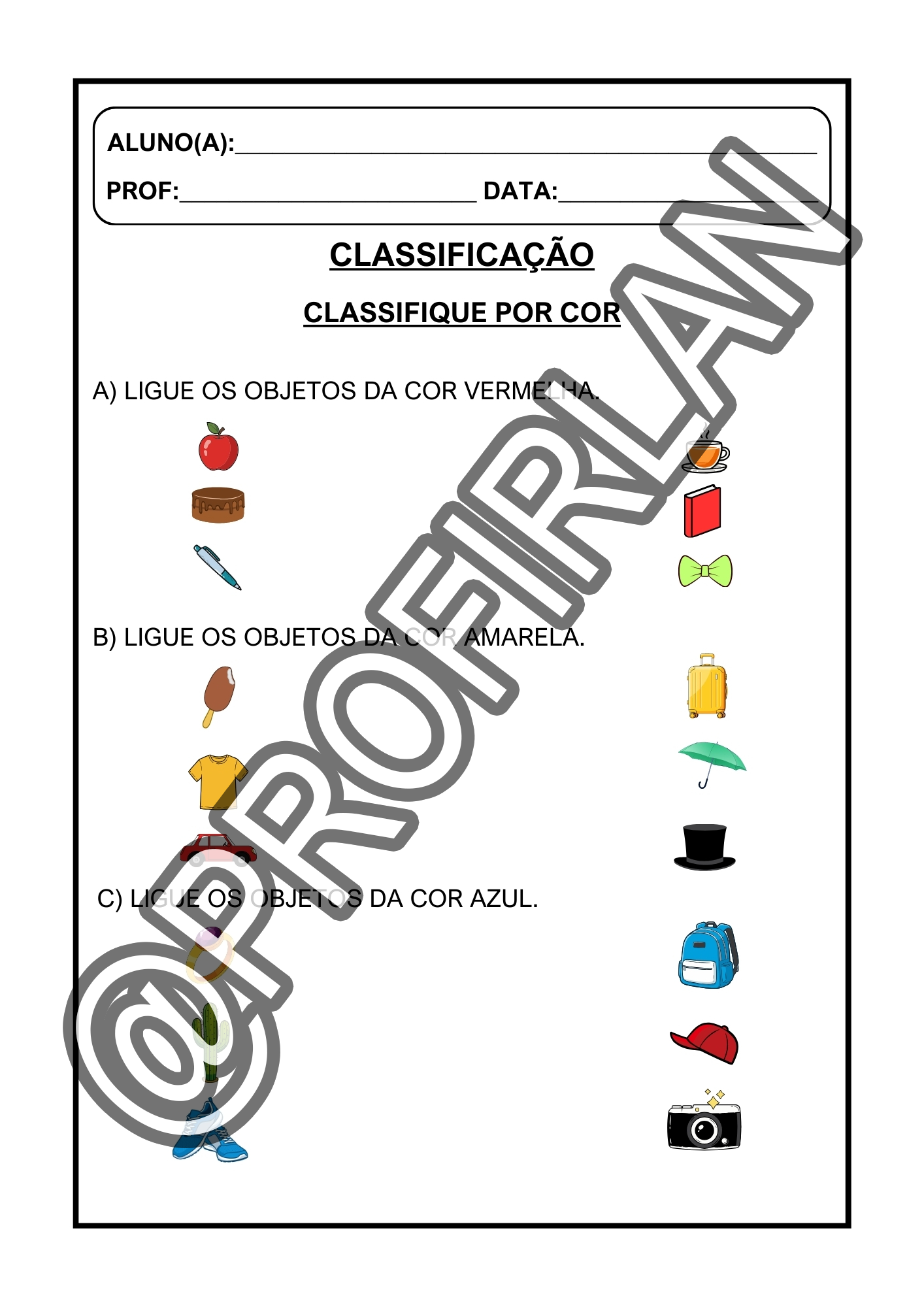 Propostas de classificação (por cor, forma, tamanho e categoria);